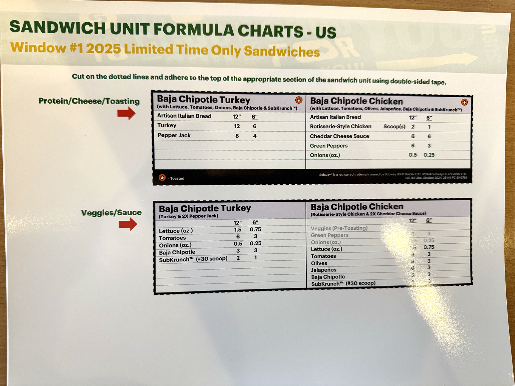 Sandwich Unit Formula Charts - US SW3781