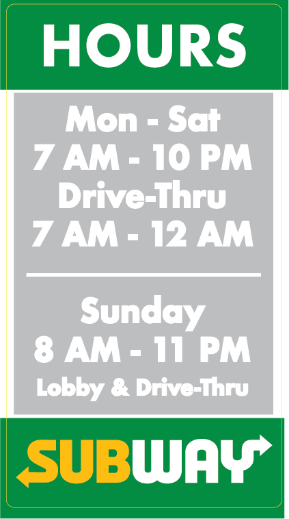 Subway Hours Door Clings SW9